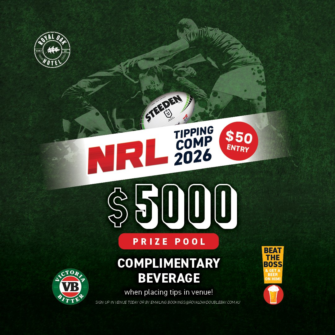 It’s that time of year again, Footy season is just around the corner and it’s time to sign-up for The Oak's NRL Tipping Comp! 🏉